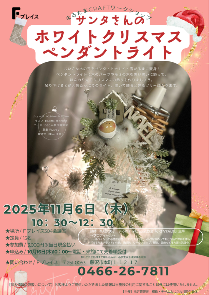 ■11/6藤沢Fプレイス「サンタさんのホワイトクリスマス・ペンダントライト」
