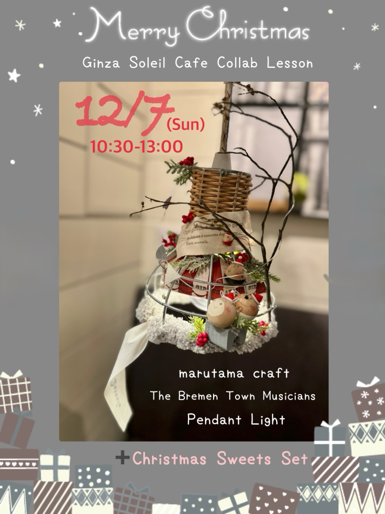 ■12/7銀座ソレイユカフェコラボレッスン「ブレーメンの音楽隊クリスマスペンダントライト」
